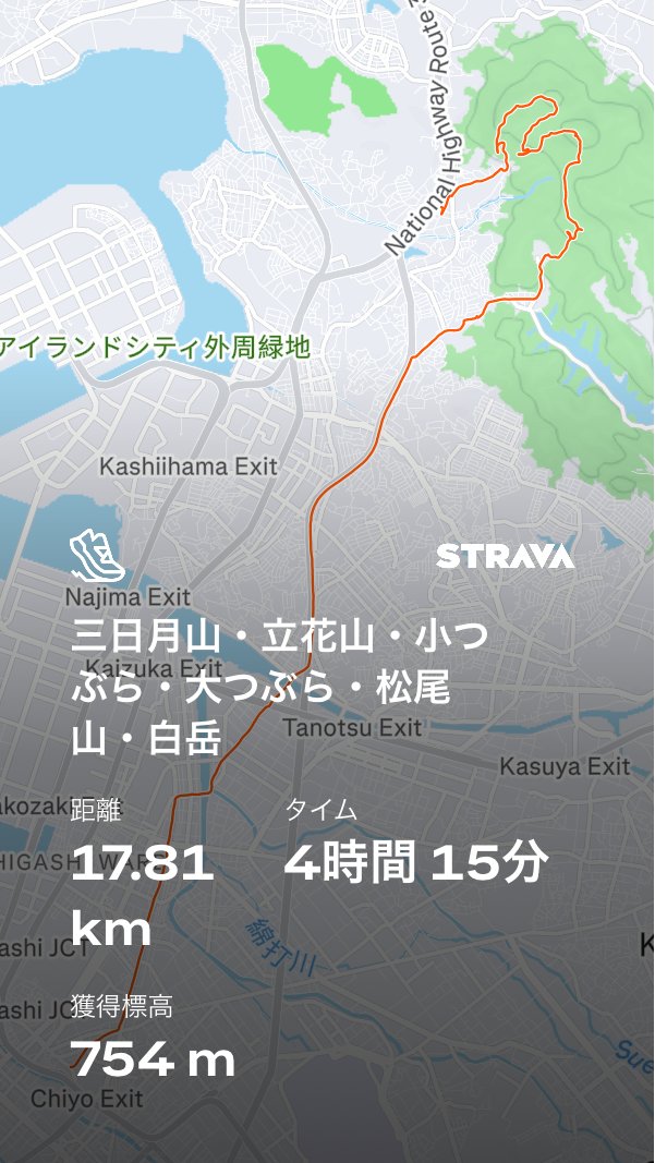 でも、甘かったです。福岡の山は、関西で登っていた山とは全然違いました。標高は低いのに、道がずっと荒れていました。石が多くて、細かくて、しかも滑りやすい。何度も足を取られて、久しぶりにちゃんと滑りました。途中でふくらはぎも何度もつりそうになりました。走りながら、頭の中で何千回も「次は絶対にランニングシューズで山に来ない」とつぶやいていました。たとえハイクでも、ちゃんとした靴を履こうと本気で思いました。
